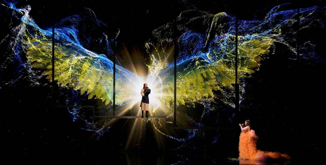 Прожектор фокусирует на сердце Alyosha абрис желто-голубой птицы – и все на сцене окрашивается в цвета нашего флага. В финале – шквал аплодисментов.