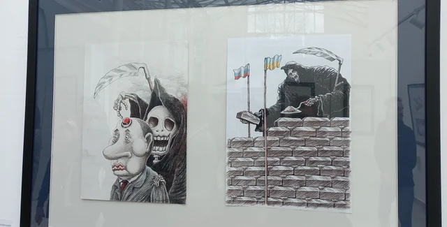 Нутро войны. В Киеве открылась выставка жестких карикатур на Путина (фото)