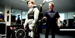 Экзоскелет, оснащенный крупной рамой крепится, к плечам, груди, поясу, коленям, стопам, что позволяет ему имитировать движения человеческого тела. Теперь 16-летний Оскар может ходить, самостоятельно встать с кресла и поворачиваться в разные стороны.