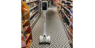В рамках пилотного проекта компания поручила машине контролировать выкладку товаров в торговом зале и проверять, правильно ли выставлены ценники. Оборудование работает автоматически и не требует помощи персонала. Устройство представляет из себя мобильную платформу на двух колесах, к которой прикреплена узкая стойка с датчиками и планшетом.