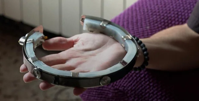 Нил Харбиссон страдает ахроматопсией, из-за которой видит мир лишь в оттенках серого. Около десяти лет назад он вместе со студентом Плимутского университета Адамом Монтандоном разработал уникальный имплант, который вживил в свой мозг. Устройство Eyeborg в виде гибкой антенны позволяет молодому человеку буквально "слышать" цвета: информация с камеры преобразовывается в вибрацию и отдается звуками в голове благодаря технологии костной проводимости.