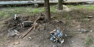 Полицейские начали расследование и обнаружили на месте одного из взрывов останки беспилотного летательного аппарата, которые сфотографировали и разместили в соцсети. Как предполагает "Милитарный", на снимках запечатлены части дрона-камикадзе Shahed-136 иранского производства, который россияне подписывают как "Герань-2".