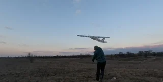 Беспилотник поднял в небо и сбросил на цель макет боеприпаса максимальной массы. Разработчик ожидает, что он сможет летать на 50 км и сбрасывать бомбы весом до 3 кг.