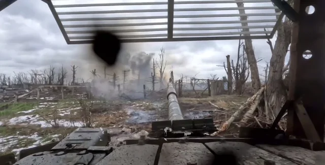В Сети появилось видео атаки, снятое одним из танкистов. Т-72Б3 с защитной решеткой, которую часто называют "мангалом" вел огонь по украинским позициям, когда по нему нанесли удар прямо в башню. На кадрах можно заметить, что танк загорелся, после чего экипаж его покинул и побежал к другой боевой машине, чтобы спастись от гибели.