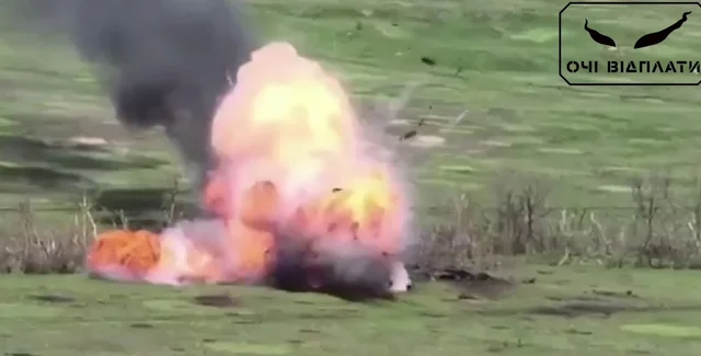 Оператор подразделения БПЛА "Очі відплати" запустил дрон-камикадзе "Goida" с управлением от первого лица (FPV) и направил его в открытый люк бронетехники, где летательный аппарат и взорвался. Разведывательный дрон снял издалека, как внутри танка начался пожар, который привел к зрелищной детонации боекомплекта.
