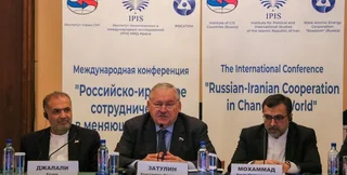 На видео зампред Комитета Госдумы РФ по делам СНГ Константин Затулин, а также представители "Росатома" общались с чрезвычайным и полномочным послом Ирана в России Каземом Джалали и президентом Института политических и международных исследований (ИПИС) МИД Ирана Мохаммадом Шейхолеслами.