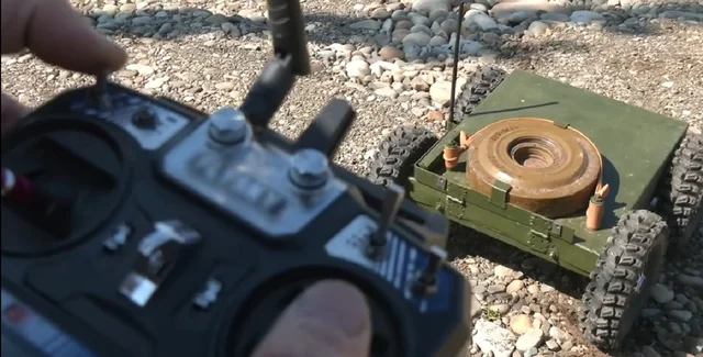 В середине мая Роман и Владимир по просьбе военных начали изобретать наземный беспилотник. Изначально они хотели наземный собрать "камикадзе", который бы приезжал на позиции оккупантов и взрывался, но потом передумали и выбрали другую концепцию — аппарат, способный сбрасывать мины. После выполнения боевой задачи он может возвращаться, чтобы взять другой боеприпас и снова отправиться в бой.