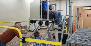 Во время эксперимента испытуемые будут сидеть пристегнутыми кресле, расположенном на платформе, которая может двигаться благодаря шести опорам, реалистично имитирующим движение так, как если бы люди находились в самолете. Они также наденут VR-очки и наушники, чтобы получился эффект полного погружения. Ученые будут измерять их уровень дискомфорта. Каждый раз, когда испытуемому будет некомфортно, он буден нажимать на кнопку. Эти сигналы потом сопоставят с записанными визуальными эффектами, данными о движении платформы и с физиологическими параметрами, такими как частота сердечных сокращений и частота дыхания.