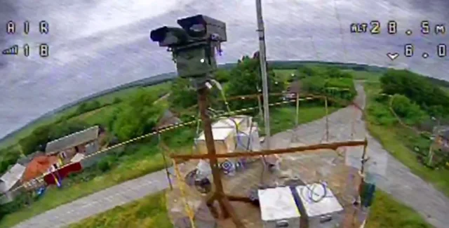 Россияне установили "Муром-П" на вершине водонапорной башне в одном из населенных пунктов Белгородской области, который, вероятно, находится неподалеку от границы с Украиной. Неизвестные запустили FPV-дрон, который врезался точно в оборудование и взорвался.