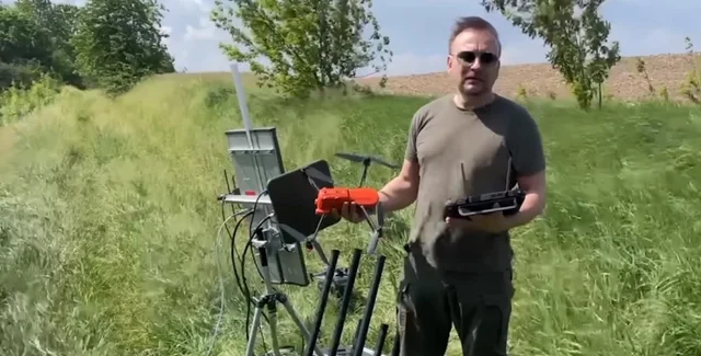 Сергей Флэш с дроном и средствами РЭБ на полигоне | Фото: Скриншот