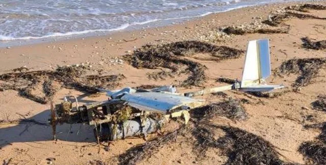 Загадочный БПЛА рухнул в песок на российской косе Чушка в Краснодарском крае, которая выходит в Керченский пролив.