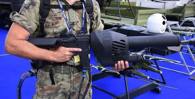 На выставке военной выставке "Партнер 2023" в Сербии продемонстрировали новую сербскую антидроновую винтовку Drone Off, которая с помощью помех борется с БПЛА противника. Об этом сообщает портал Army Recognition.