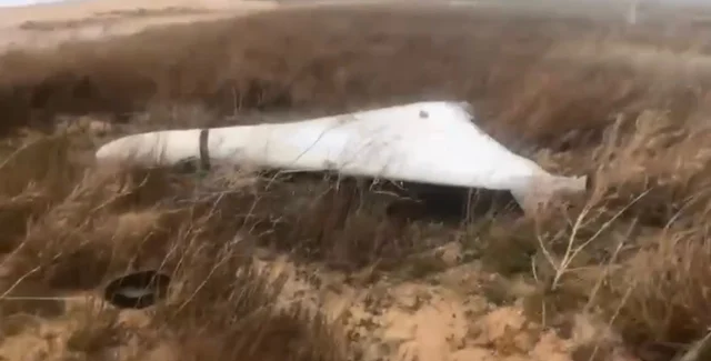 Судя по размеру, речь идет о Shahed-136, автор ролика обратил внимание, что аппарат намного больше его самого. На эту модель также указывает надпись "Герань-2" на элементе крыла.