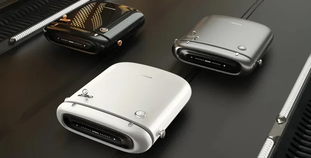 SOON Mini имеет симпатичный корпус 250×250×68 мм с закругленными углами и доступен в черном, сером или белом цветах. Он оснащен небольшим физическим рычагом регулировки громкости в левом верхнем углу и кнопкой питания справа. По бокам также есть две ручки для крепления плечевого ремня, чтобы вы могли носить его как сумочку.