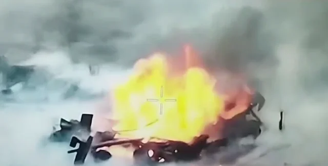 В заметке указано, что ликвидация техники состоялась на территории Донецкой области. На видео можно увидеть, что тяжелая бронетехника с защитными решетками ("мангал") на башне находится на дороге. Впоследствии украинский оператор прицельно наносит удар.