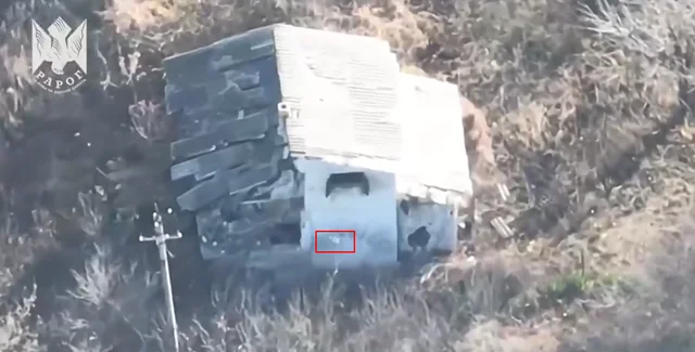 В одном из случаев FPV-камикадзе даже пережил детонацию собственного полезного груза. Целью был российский тактический радар, который работал через щель в крыше разрушенного дома. На видео показано, как дрон пролетает сквозь щель и взрывается, а видео продолжается после взрыва — значит, дрон продолжает работать. Кадры другого беспилотника показывают, что взрыв снес большую часть оставшейся крыши.