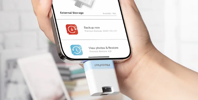 Компактное устройство, изготовленное гонконгской компанией по производству электроники PhotoFast, подключается непосредственно к порту USB-C Apple iPhone или смартфона с операционной системой Android и автоматически запускает программу для резервного копирования контактов, календаря, фотографий, видео, документов и музыкальных файлов с телефона.