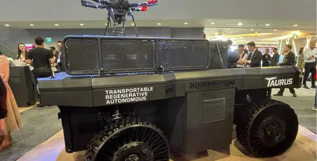 На выставке Singapore Airshow компания ST Engineering презентовала беспилотный наземный автомобиль Taurus, оснащенный мультироторным дроном. Новый продукт можно использовать для наблюдения, эвакуации раненых с поля боя, логистических перевозок и погрузочно-разгрузочных работ, передает Defense News.