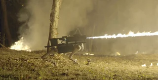 Компания Throwflame из Огайо (США), утверждает, что созданный ею первый в мире робот-собака Thermonator, владеющий огнеметом, мог бы пригодиться на поле боя в Украине. Подробности раскрыло издание TWZ.