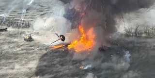 На видео можно увидеть, как БПЛА приблизился к вражескому танку и сбросил гранату прямо в люк. Вскоре после возгорания самого танка, сдетонировал боекомплект, из-за чего огонь перекинулся на танк, стоящий рядом.