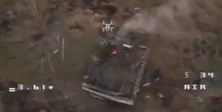Украинские военнослужащие из подразделения BULAVA уничтожили танк Вооруженных сил Российской Федерации с помощью беспилотника-бомбардировщика, разработанного командой волонтеров "Дикі Шершні". Советующее видео было опубликовано в Telegram-канале производителя БПЛА.