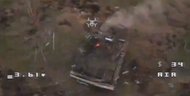 "Танк горит изнутри. Ювелирная работа оператора дрона", — говорится в субтитрах к видео.