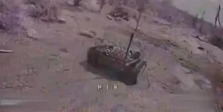 Военнослужащие подразделения БПЛА "Мурчики" 57-й отдельной мотопехотной бригады Вооруженных сил Украины уничтожили наземный дрон Вооруженных сил Российской Федерации при помощи собственного FPV-дрона. Соответствующее видео было опубликовано в официальном Telegram-канале подразделения.