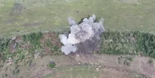 Сообщается, что российская ФАБ-250 "внештатно сошла" на позицию ВС РФ, однако не разорвалась. Это заметили украинские военные, после чего нанесли удар по боеприпасу оккупантов с помощью FPV-дрона.