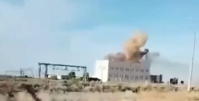 Момент удара по зданию российского ракетного полигона в Астраханской области | Фото: Скриншот