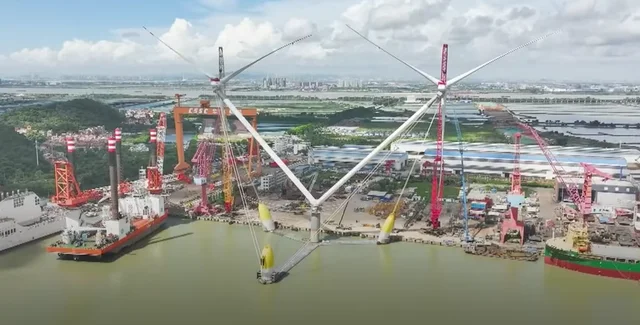 Китайский производитель ветряных турбин MingYang Smart Energy официально запустил в портовом городе Гуанчжоу крупнейшую в мире двухтурбинную ветряную платформу V-образной формы Ocean X общей мощностью 16,6 МВт. Об этом пишет портал Interesting Engineering.