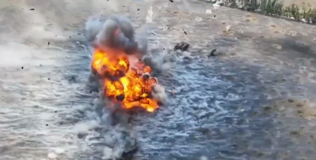 Военнослужащие 46-й отдельной аэромобильной бригады (ОАэМБр) Десантно-штурмовых войск Вооруженных сил Украины эффектно уничтожили танк-сарай Вооруженных сил Российской Федерации с помощью FPV-дрона. Соответствующие кадры были опубликованы в Telegram-канале подразделения.