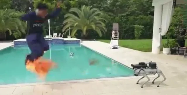 В ходе стрима парень давал робопсу различные команды, которые тот послушно выполнял. Когда стример сказал "лаять" и сымитировал собачий лай, робот выстрелил в его сторону из огнемета. Увидев огонь, iShowSpeed быстро спрыгнул в бассейн, призывая машину остановиться. Робот сделал еще несколько выстрелов в сторону бассейна, после чего отключился.