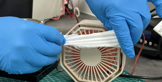 По словам ученых, инновационная тонкая заплатка из нескольких слоев полистирола, каждый из которых примерно в одну десятую толщины человеческого волоса, может производить статическое электричество из воздуха, дующего на ее поверхность. Такой сбор энергии возможен за счет электропрядения чередующихся слоев волокон полистирола малого и большого диаметра.