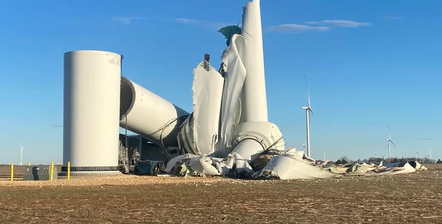 Во вторник, 25 февраля, на севере штата Оклахома (США) по неизвестным причинам рухнула огромная ветряная турбина, оставив после себя обломки, разбросанные по полю. Об этом пишет портал The Oklahoman.