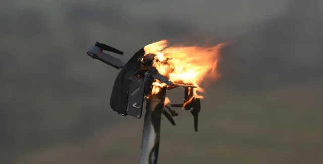 Лазерная система Aurelius Systems подожгла квадрокоптер на расстоянии 110 метров, используя мобильную систему питания Chariot.