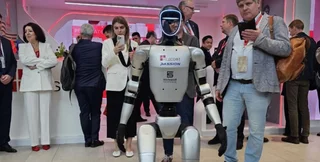 Роботов-гуманоидов, показанных на форуме, назвали "Володей" и "Робертом". В The Moscow Times обратили внимание, что первый из них представлен от компании "Ред софт".