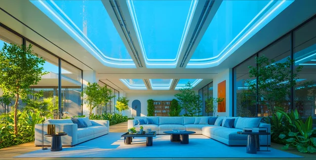 Охлаждающая система работает по простому, но эффективному принципу. Теплый воздух, будучи менее плотным и легким, чем холодный, поднимается к потолку, где сталкивается с трубками с холодной водой, которые быстро его охлаждают. Технология поддерживает комфортную температуру помещении, без постоянного шума и потоков воздуха, обычно присущих традиционным системам кондиционирования. В процессе стены поглощают меньше тепла, способствуя созданию более прохладной и комфортной среды в целом.