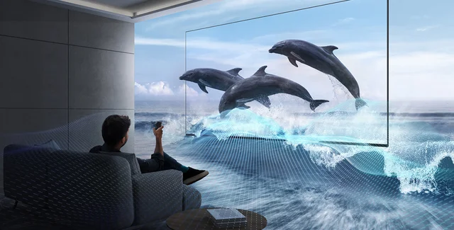 Матовая рамка корпуса цвета оружейной стали у QM8K плавно переходит в экран всего через 3,2 миллиметра без черного ободка толщиной около 10 мм, как любая аналогичная модель. На фоне этого телевизора другие кажутся устаревшими и старомодными. Кристаллическая панель WHVA поддерживает до 3040 зон локального затемнения (в зависимости от размера телевизора), что обеспечивает потрясающее изображение, а отсутствие рамки создает ощущение, будто изображение парит в пространстве.
