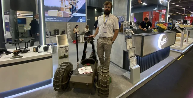 Украинская компания "Роботизированные комплексы" представила на выставке IDEF 2025 в Стамбуле наземный беспилотный аппарат "Триминер" для минирования территорий.