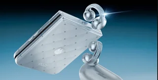 - кристалл Swarovski, вмонтированный в петлю складного смартфона.
