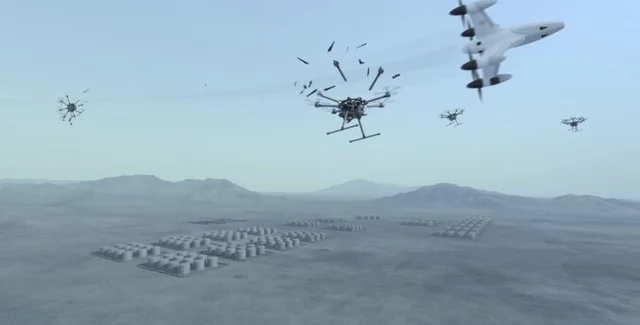 Перехватчик взлетает с вертикальной интеллектуальной пусковой установки, подключенной к сенсорной инфраструктуре NiDAR. Система обнаруживает цель с помощью встроенного ИИ и преследует врага с высокой маневренностью.