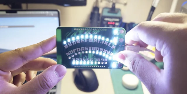 Энтузиаст собрал любопытную визитную карточку со встроенной языковой моделью, работающей автономно. Гаджет, получивший название Bouija, отвечает на вопросы, подсвечивая буквы светодиодами, как на спиритической доске.