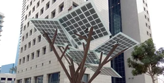 Солнечное дерево — это конструкция, имитирующая форму дерева, с фотоэлектрическими элементами. Прототип, установленный в Сеуле, достигает высоты почти 5 метров и оснащен 35 солнечными панелями на стальных "ветвях". Каждая из них может генерировать до 15,8 кВт, чего достаточно для обеспечения нескольких домов.