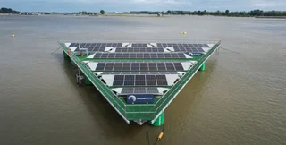Солнечная электростанция Waal River Pilot от SolarDuck, расположенная на реке Ваал (Нидерланды), состоит из треугольных платформ размером 16 × 16 × 16 м каждая на алюминиевых каркасах, пишет ecoticias.com.