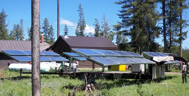 В парке Йеллоустоун (США) установлены солнечные панели, но не обычные, а мобильные. Солнечная электростанция установлена на прицепе и ежегодно перевозится в удаленные места парка.