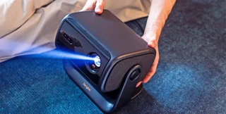 Если вам по вкусу более компактные модели, то есть серия MoGo 4 от Xgimi. Эти мини-проекторы работают от батареек, поддерживают Google TV и Netflix, а версия Laser фактически вмещает в себя тройную лазерную проекцию, которая легко помещается в рюкзак.