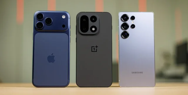 Слева направо: iPhone 17 Pro Max, OnePlus 15, Galaxy S25 Ultra