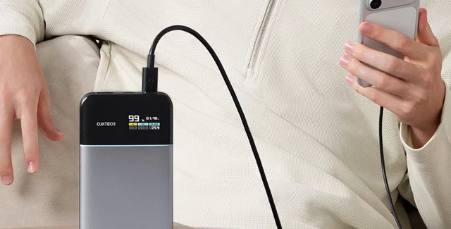 Повербанк Cuktech 15 Air быстро заряжает до трех устройств с выходной мощностью 65 Вт и поддерживает входную мощность 100 Вт для быстрой подзарядки.