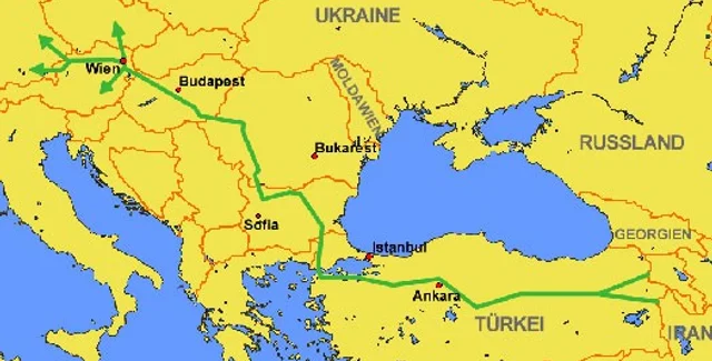 Трубопровод "Южный поток" пройдет из Новороссийска в Болгарию по дну Черного моря, а далее разделится на два направления: через Грецию в Италию и через Сербию и Венгрию в Австрию.Стоимость подводного участка оценивается в 6-10 млрд. долл, а мощность трубопровода составит 30-65 млрд. кубометров газа в год. Общая смета проекта может составить 25 млрд. долл. Его планируется построить к 2013 году.