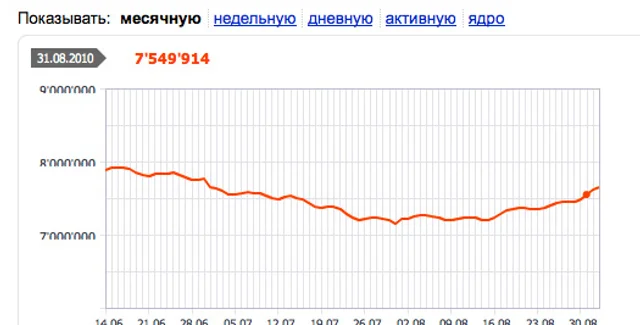 Пик сезона отпусков пришелся на конец июля - начало августа. Со второй половины августа начался рост, и к концу месяца пользователей украинского Интернета насчитывалось 7 млн. 549 тыс., что на 5,2% больше, чем по итогам предыдущего месяца.